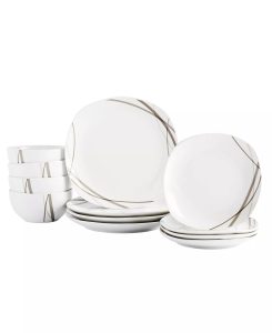 【折后$22.99】Tabletops Unlimited Curves Square 12件套餐具组