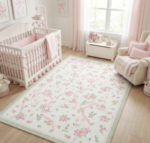 GarveeHome Coquette Pink and Green Bow Rugs for Bedroom Girls
