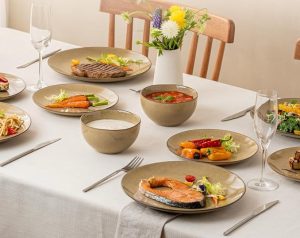 原价$49.99!套装含10.5”大盘、8”沙拉盘和23盎司碗,黄土色手绘边设计,ORC陶土制成,无铅无镉,高温烧制耐刮耐热,适用微波炉和洗碗机,每餐都安心优雅。