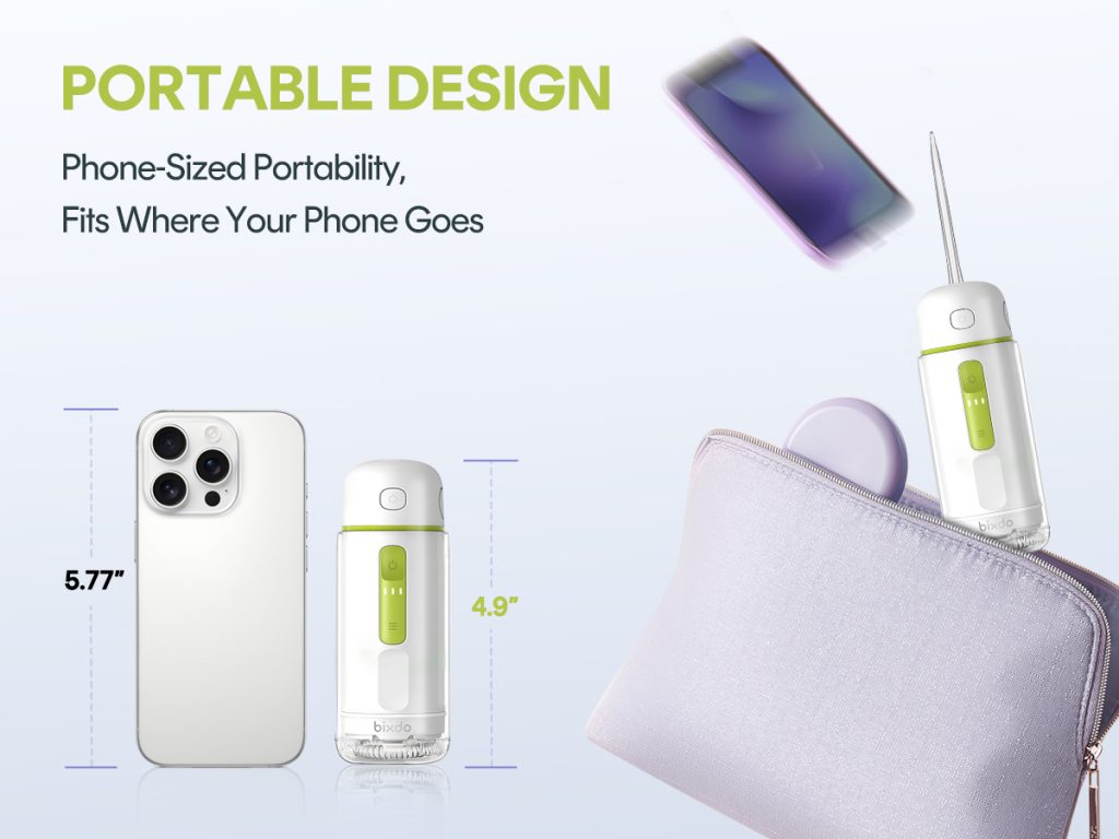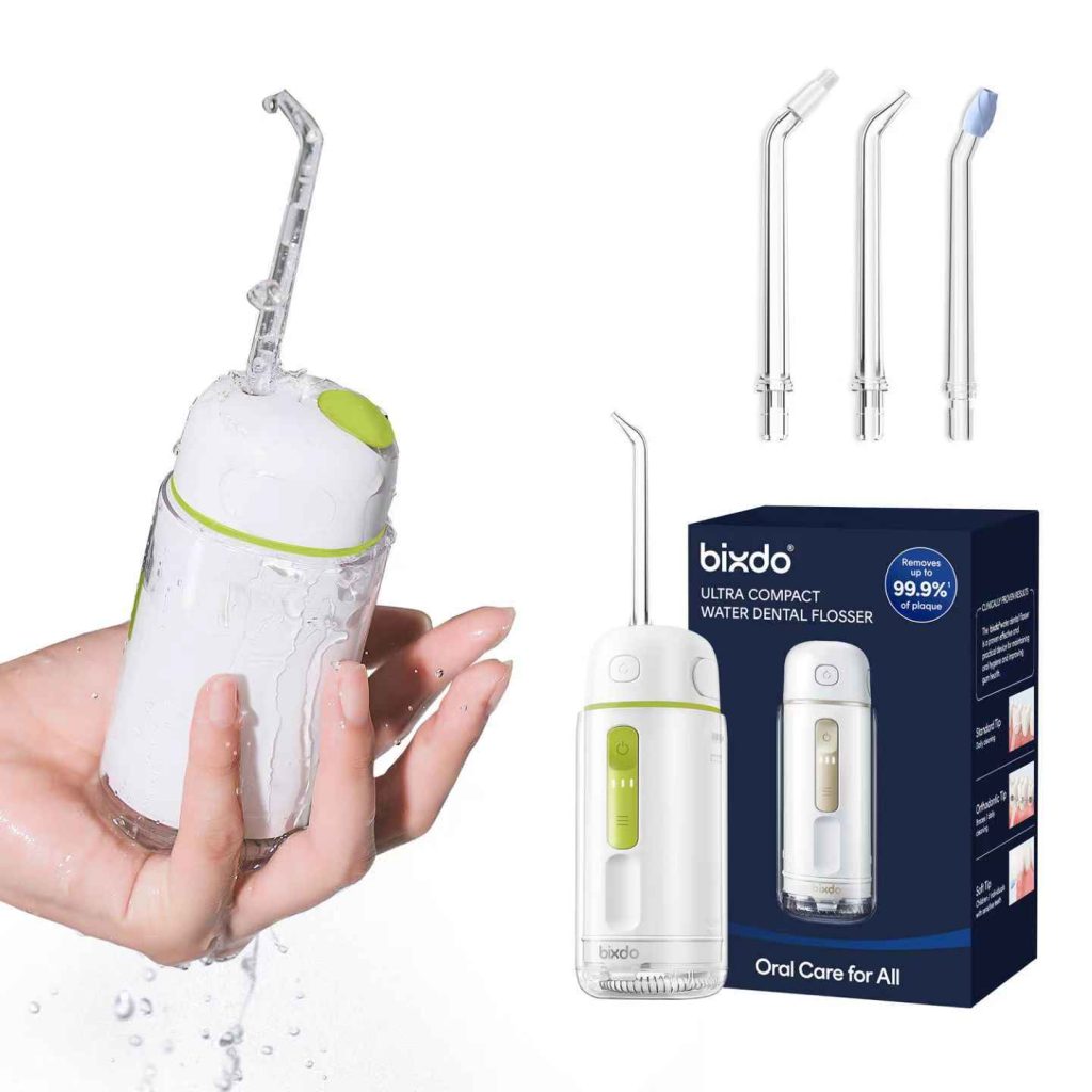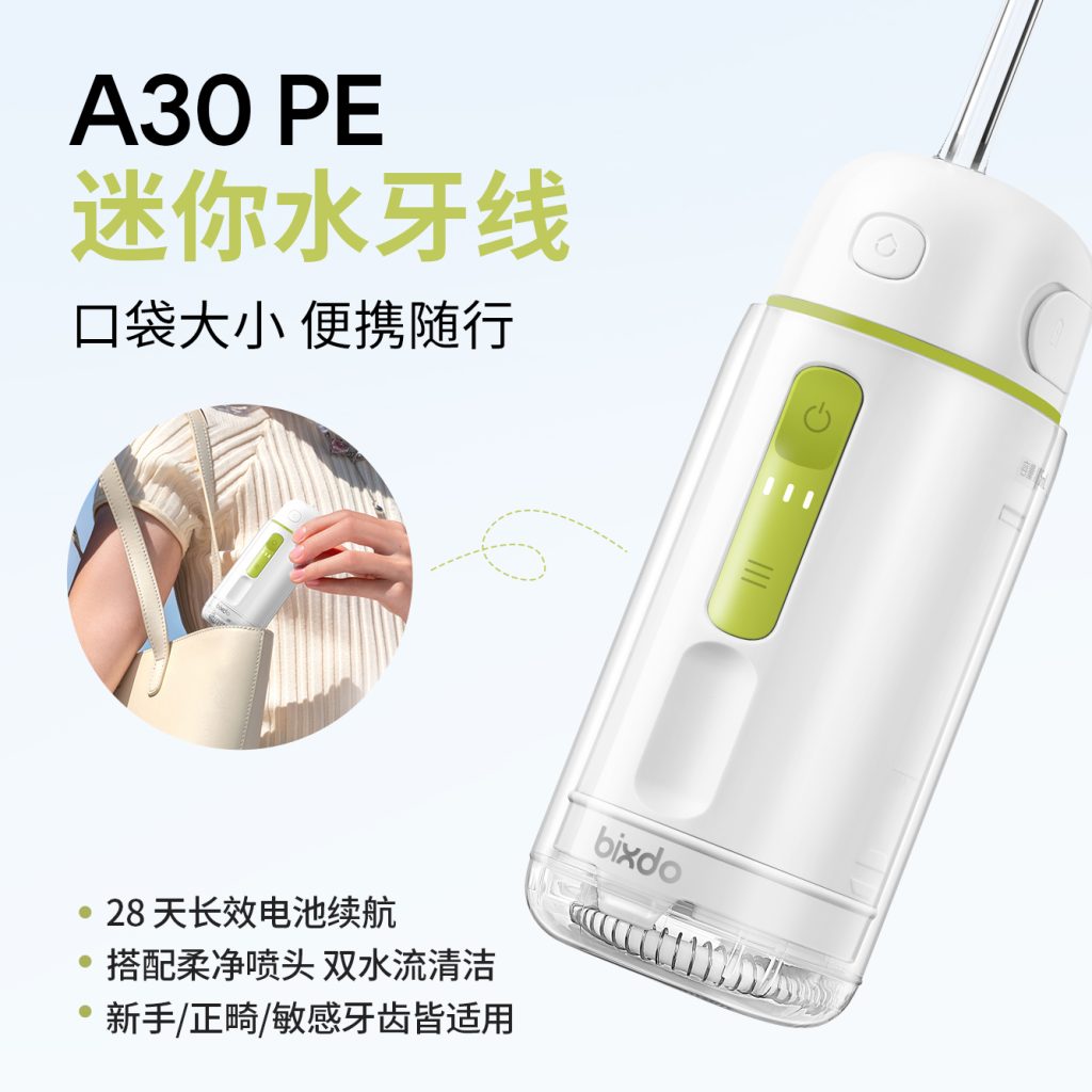 原价$34.99!bixdo A30 PE迷你水牙线,整机小于iPhone,重量不足200g,口袋大小,单手可握,轻松装进行李或随身包,适合通勤、外出和差旅使用。支持轻柔 / 标准 / 强力三种洁齿模式,满足不同清洁需求。双水柱旋转水流,清洁更温和高效,牙菌斑清除率高达99.9%。配备多款喷头,适配牙套、敏感牙、齿缝清洁等多种场景。一次充电可续航28天,IPX7级防水,沐浴时也能放心使用。可拆卸水箱设计,方便清洗,有效防止细菌滋生, 便携与性能兼备,是日常与旅行中的理想洁牙工具