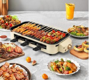 原价$55.99! 采用1700W高效加热系统,支持双层同步烹饪。上层配备大面积不粘烧烤网,适合烤肉、海鲜和蔬菜;下层带有独立小烤盘,可制作芝士焗餐或煎蛋。分体式结构方便拆卸清洗,不粘涂层更耐用。旋钮式控温操作简单,让你在家就能轻松享受无烟烧烤的乐趣