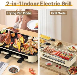 Pukomc Electric Indoor Grill,2 in 1 Indoor Grills for Kitchen with Grill Net & Non-Stick Cooking Removable Plate