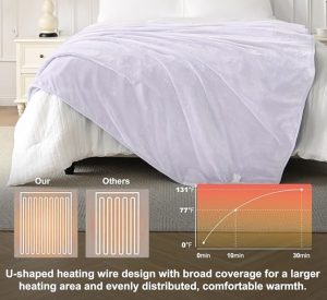 RHEIN HOME Electric Blanket Throw Size Fast Heating Fuzzy Electric Heated Blanket with 4 Heat Settings 3h Auto Off