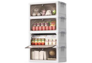 原价$33.99, 每层尺寸为15.6″×11.2″×8.7″,总容量达96夸脱,具有卓越承重能力,不易变形或破损,满足您对储物的高要求。其安全稳定的结构设计采用共用顶板与侧面卡扣固定,有效防止晃动和松动,同时凹槽设计便于堆叠,实现高效有序的物品收纳。透明前侧面板让您轻松识别内部物品,顶盖及前侧开口两种开启方式更增实用性;下层可折叠储物箱正面开合,使用便捷。折叠设计可节省空间,让居家环境更加整洁有序。