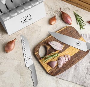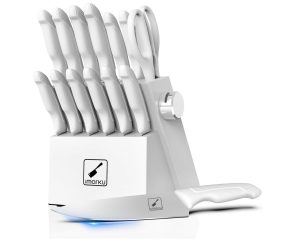 原价$89.99! 这款厨具采用优质日本不锈钢精制而成,经久耐用。刀片锋利耐用,防锈性能出色,即使频繁使用也能保持锋利, 这款14件套刀具套装包含刀座和磨刀器,涵盖您厨房所需的所有刀具:8英寸厨师刀、8英寸切片刀、7英寸三德刀、8英寸面包刀、5英寸多用刀、3.5英寸削皮刀、6*4.5英寸牛排刀和一把厨房剪刀, 每个刀片都经过精心设计,达到15°超锋利度,确保每次都能快速、干净地切割, 符合人体工程学的防滑手柄提供舒适的握持感,减轻手部疲劳