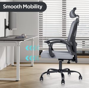 原价$43.99! 高背网布座椅,配备可调节头枕和内置腰部支撑,有助于保持正确坐姿,并减轻长时间工作时的背部压力, 可定制头枕位置和可翻转扶手,带来个性化舒适体验,节省空间, 座椅采用记忆海绵,持久舒适,即使长时间使用也能保持形状, 高背采用透气网布材质,增强空气流通,让您全天保持凉爽, 顺滑的滚轮和360度旋转底座,确保您在工作空间内轻松移动和使用