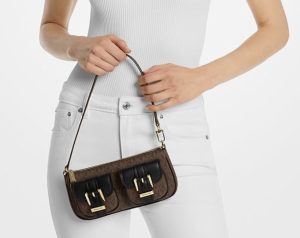 原价$99.5! Zoe 手拿包选用品牌标志性的印花帆布制成,包身轮廓挺括有型,并配有外部口袋设计,兼具时尚美感与实用功能,流露出一丝复古情怀
