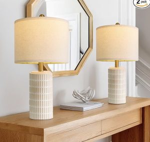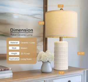 PoKat 20.75″ Small Modern Ceramic Table Lamps Set of 2 for Bedroom