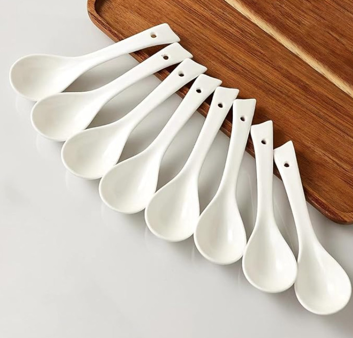 【折后$4.99 Prime包邮】陶瓷汤羹勺 8个