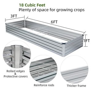 2 Pack 6x3x1FT Galvanized Raised Garden Beds Kit Outdoor Metal Gardening Planter Box for Vegetable Elevated Flower Herbs