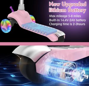 原价$119.99! 超宽防滑踏板,想站哪儿就站哪儿,享受持续电力。只需一脚蹬起儿童电动滑板车,踩下爪式设计按钮即可骑行!这款电动滑板车更有趣、更顺滑,深受广大儿童喜爱, 采用自发电系统供电,孩子开始骑行时,车轮会自动亮起,无需电池, 彩色LED转向灯,明亮醒目,为孩子带来更多玩乐乐趣,也是夜间骑行的安全保障