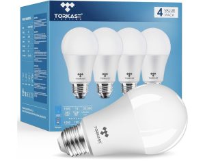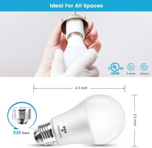 原$9.99!等效100W白炽灯,提供1500流明3500K柔和暖白光,瞬间点亮无频闪,保护视力不刺眼。标准A19形状和E26螺口,安装简便,适用于厨房、卧室、客厅等多种场景。