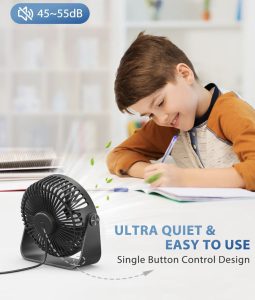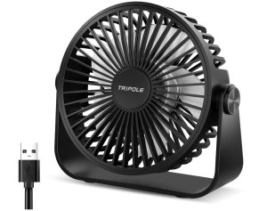 TriPole USB Desk Fan 4.5 Inches Portable Mini Fan Powerful 3 Speeds Wind Personal Desktop Fan with 360° Head Rotation for Home Office Car Indoor Outdoor Black