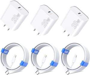 原价$9.99! 3套装iPhone快充器,20W PD快充头+6.6ft USB-CLightning线,30分钟充至60%。原装MFi认证,兼容iPhone 14/13/12/11全系列,安全稳压保护,适用于iPad等设备。