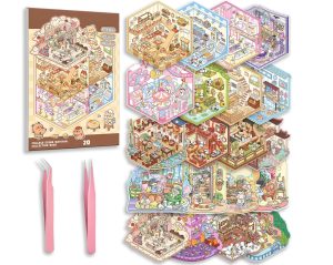 20 Sets DIY 3D Sticker Scene Collection Book for Kids Adults Cute Make Your Own Shop House Stickers for Gifts Stickers Therapy for Adult Relief Stress Pass The Time Play Park Hamburg Castle Library