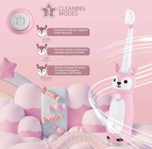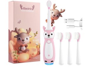 原价$19.99! 采用可爱的动物主题设计,让孩子们的刷牙变得有趣, 底部的 LED 灯发出耀眼的光芒,为刷牙增添更多乐趣!具有 3 种模式,带记忆功能、2 分钟智能计时器和 30 秒区域更改提醒, 每分钟有 31,000 次刷毛运动,可最大限度地清洁儿童的牙齿和牙龈,从而改善牙齿健康, IPX7 防水,可用水冲洗, 符合人体工程学的设计,可爱的鹿形和柔软的橡胶手柄材料可以舒适地握在孩子的手掌中,可更换的软橡胶刷头配有柔软的杜邦刷毛,舒适高效,非常适合儿童的牙龈和小嘴巴