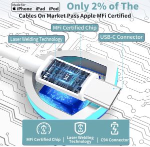 原价$15.99! 10 英尺超长 Type-C 线,配备原装 USB-C 连接器,内置最新 C94 端子和智能芯片,MFi 认证许可的 Type-C 充电线可确保 100% 高速充电。得益于原装芯片组,这可实现高达 480 Mbps 的数据传输,1G 大文件传输在 25 秒内完成, 20W USB-C 电源传输 3.0 快速充电器采用最新的 Smart iQ 芯片技术,可以自动检测连接到 Type-C 端口的 iPhone 16,同时还可以识别适当的电流,以最佳速度为设备充电