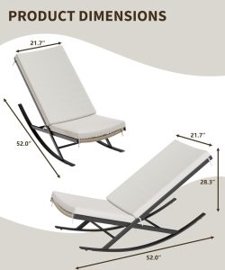 Rocking Chair Outdoor Set of 2 Patio Chairs Rocking Chairs Outdoor Lounge Rattan Chair for Outside Lawn with Cushions for Front Porch