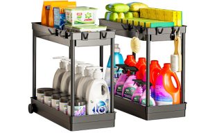 原价$24.99, 告别乱糟糟的厨房和浴室角落!这款2层下水槽收纳架,简约北欧风设计,厨房调料、浴室瓶瓶罐罐都能轻松收纳,颜值与实用兼具。ABS塑料+铁艺支撑,结实耐用不易生锈,清洁超方便。还能拆分当托盘用,一物多用超值!