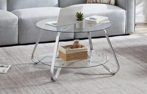 【折后$87.99 包邮】金属框架钢化玻璃现代咖啡桌 两色选