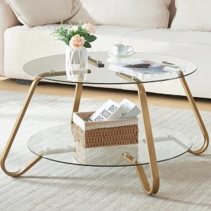原价$175.99, 透明钢化玻璃桌面与闪亮的金色金属管腿的结合,使这款现代茶几更符合现代装饰设计美学。有了这款咖啡桌,您可以为整个空间增添风格和优雅,点亮您的家居氛围。