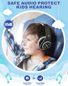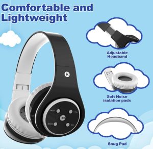 Kids Bluetooth Headphones 85db/110db Volume Limit Wireless/Wired Aux Port Foldable Noise Protection Over-Ear Build-in Mic Headphones for Kids Adults Travel School Phone Pad Tablet PC Black