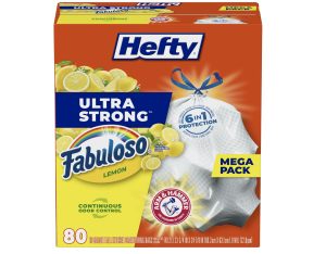 原价$16.98! 本包装包含80个Hefty Ultra Strong 13加仑白色厨房垃圾袋,带有Fabuloso柠檬香味
