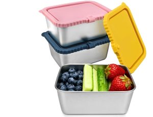 3-Pack Stainless Steel Food Storage Containers with Silicone Lids