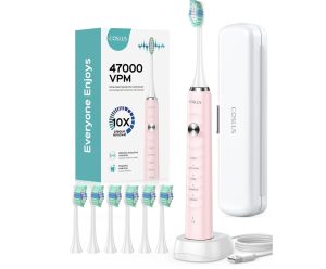 原价$26.99! 拥有 47,000 vpm 先进技术,由美国牙科团队专业认可, 配备 Ugrade 无线充电底座和旅行盒,更易于充电和旅行, “W”形设计刷子,用于深层清洁:这款电动旅行牙刷的刷子由食品级、安全耐用的刷毛制成,硬度适中柔软, W型设计符合牙齿形状,可深层清洁牙缝;末端圆角设计温和,对牙龈安全, 成人和儿童电动牙刷配有6个刷头,使用寿命为18个月, 1000+小时超强耐用性和IPX7防水!