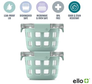 Ello Duraglass 2-Pack 2 Cup Reusable Glass Container Jar with Leak Proof Lids and Protective Silicone Sleeves | Perfect for Overnight Oats