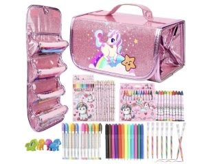 原$19.99!包含丰富的艺术用品:1个铅笔盒,12支香味大号记号笔,12支闪光胶笔,12支蜡笔,12支彩色铅笔,12支彩虹色圆珠笔,1个铅笔削笔器。多样的艺术用品可用于绘制粗细不同的线条,适用于各种着色、绘画或涂鸦技巧。