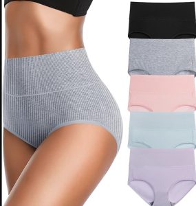 Women’s High Waist Cotton Underwear Super Stretchy Briefs Full Coverage Panties Soft Women Panties 5-Pack