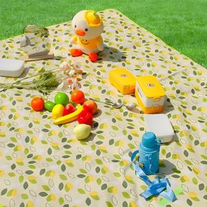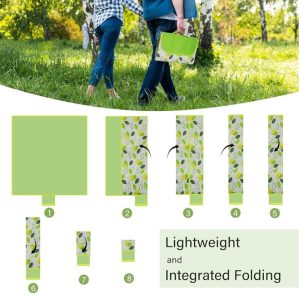 YU FENG Picnic Blanket Waterproof Foldable Green Leaves Outdoor Beach Blankets Lightweight Tote Shaped Mat for Travel Camping Family Party (80×80 inch)
