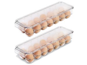 原价$17.99! 托盘尺寸为 14.5 x 4.3 英寸,深度为 2.9 英寸,有 14 个空位, 每个空间都可以稳固地容纳鸡蛋,避免任何擦伤或损坏, 使用优质透明鸡蛋托盘整理您的冰箱,使其看起来更干净整洁。托盘非常适合容纳鸡蛋,防止它们受到任何损坏, 托盘配有盖子,采用易于堆叠的设计,可让您将其堆叠在任何其他物品上方或下方,而不必担心鸡蛋会破碎或切开, 坚固、紧凑的托盘设计确保耐用性,而坚固的形式使其易于放入冰箱的任何隔间,占用最少的存储空间