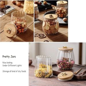 FANTESTICRYAN Glass Coffee Nuts Canister Airtight Storage Jar Petal Decorative Container with Bamboo Lid Metal Handle Easy to Grasp 700ml
