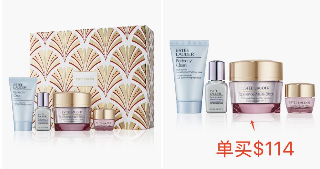 原价$194, 包括正装多肽面霜日霜50ml+旅行装多肽眼霜+线雕精华+洁面乳。超值套装,多肽系列可使肌肤焕发光彩、饱满柔嫩、更有弹性,并帮助减少细纹和皱纹的出现。塑出紧致轮廓!