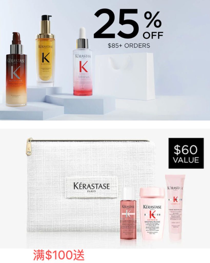 Kerastase卡诗网一升级❗️今天结束!罕见满$85可享75折+满送礼包+无门槛包邮!