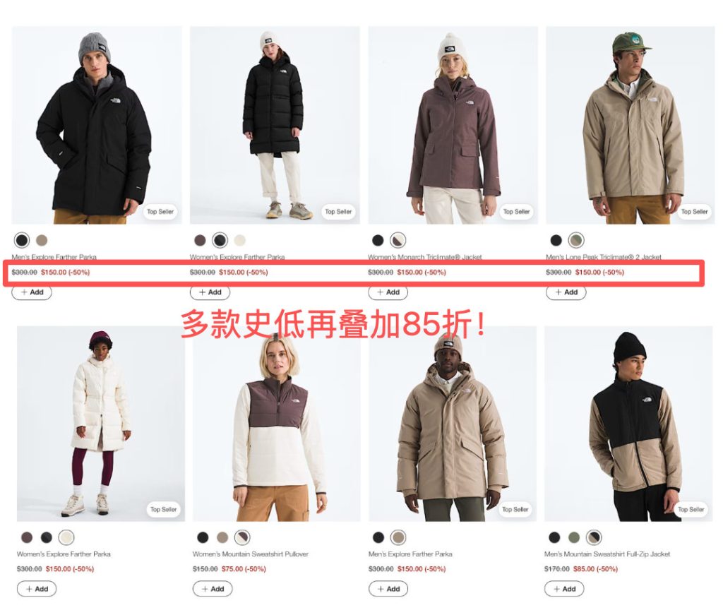 今天就结束🔚没买的赶紧❗️The North Face官网正价7折+折扣区多款新低就今天!无门槛免邮!
