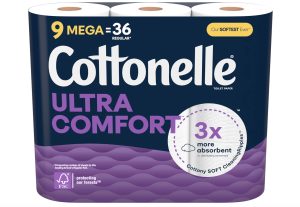 原价$10.99! 9 卷超大卷 Cottonelle 超舒适卫生纸;每卷 244 张, 采用 Cottony Soft CleaningRipples 制成,带来无与伦比的舒适感, 吸水性是 3 倍