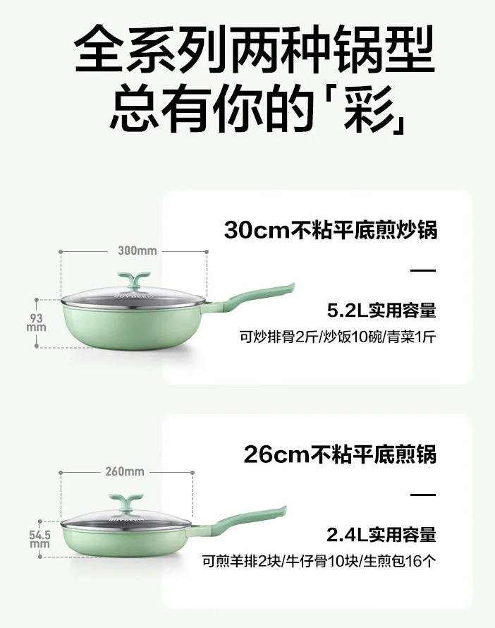 买就送$10礼卡!【折后低至$66.99 包邮】Buydeem北鼎春芽系列不粘炒锅 26cm/30cm选