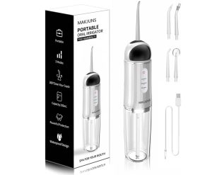 Water-Flosser-Cordless-Teeth-Cleaner MAKJUNS Water Dental Flosser with 3 Modes 4 Jets Rechargeable Dental Oral Irrigator for Home Travel