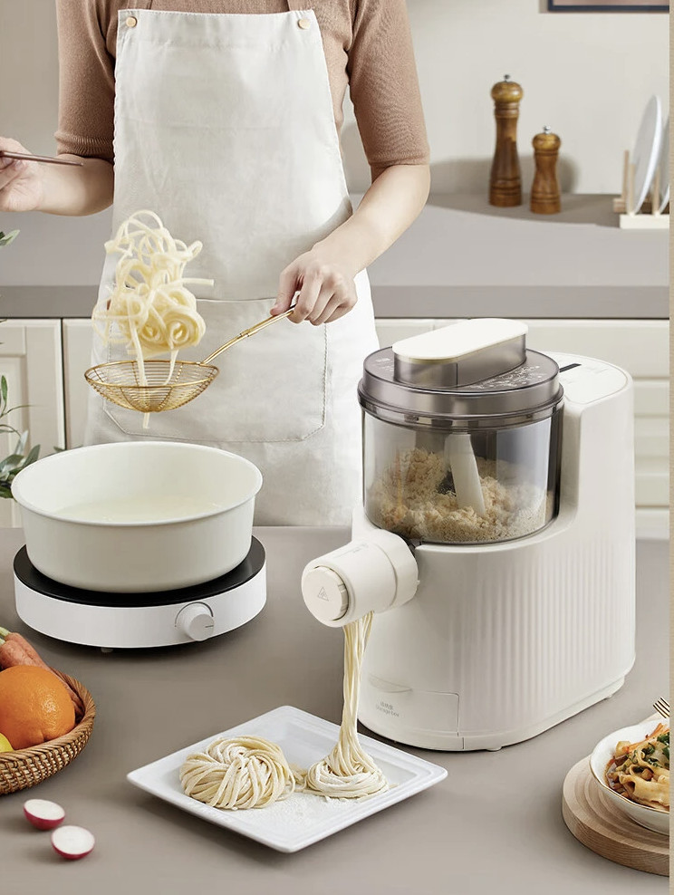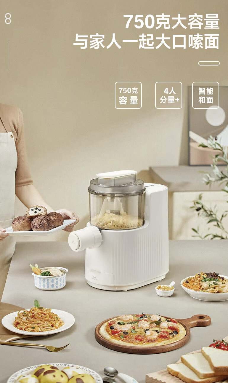 原价$189! 双向挤压更筋道, 根据配比表,3步快速出好面,筋道爽口, 7大模头,能做7种面型,解锁海量面食食谱, 垂直90°出面,根根分明,不粘黏剩面少, 750g大容量,满足1-4人家庭,与家人大口嗦面, 和面搅面一体刀,可拆组件,方便清洗, 隐藏式配件盒,方便收纳,使用随心