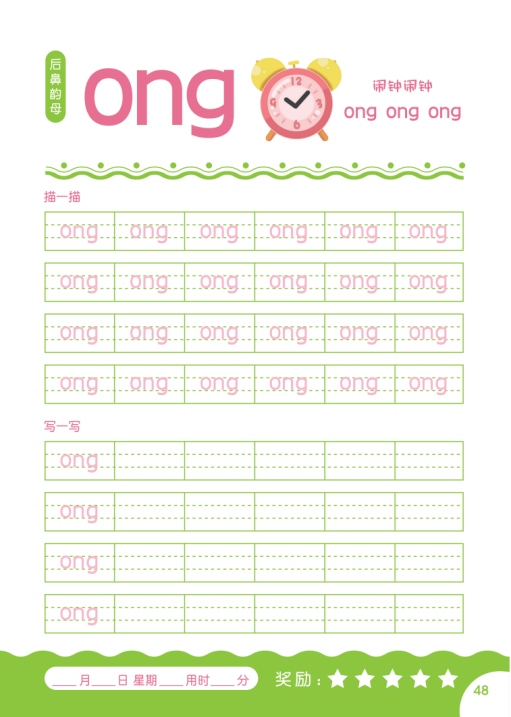 从单韵母到整体认读音节,适合刚开始学拼音的海外娃。附有发音技巧,边描边读,帮娃打好拼音基础,说准普通话。