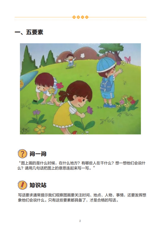 从单句回答到连贯讲述,附逻辑技巧及引导式提问:“图中有谁?在做什么?” 帮娃敢开口、会表达。
