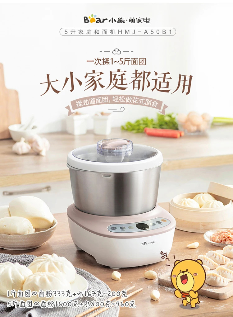 5升大容量,一次揉1~5升面团,大小家庭都适用