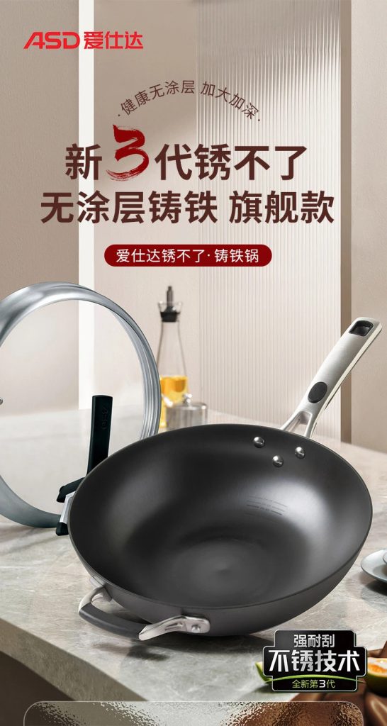 爱仕达ASD旋风不锈无涂层铸铁锅32cm