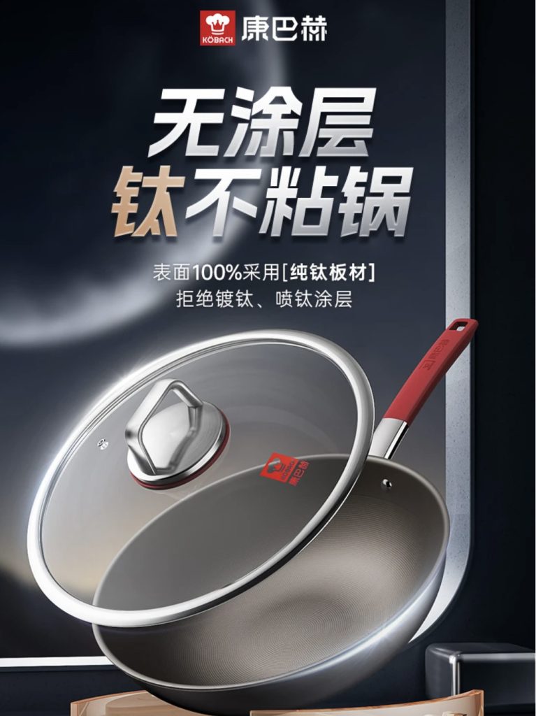 康巴赫 炒锅 无涂层钛不粘锅家用少油烟平底炒菜锅