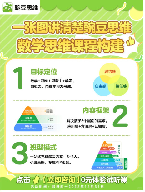 - 数学思维塑造高阶认知模式。通过数学训练,孩子学会将复杂问题拆解为可操作的步骤(结构化思考),在不确定性中寻找规律(抽象思维)。