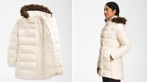 原价$300, 城市通勤与冬日保暖的理想平衡!550 蓬松度鹅绒填充,轻暖不臃肿,修身剪裁勾勒优雅身形;防泼水面料+可拆卸仿皮草帽领,御寒又有型,日常出街也能轻松赢很大。