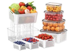 原价$21.99! 5 个带盖水果储存容器包括 5 个容器、5 个可拆卸滤锅。5 种不同尺寸,从 140 盎司到 12 盎司(4150 – 350 毫升), 配有 5 个可拆卸滤锅, 可拆卸滤锅使水果和蔬菜的冲洗和沥干更容易,防止食材因浸泡过度而变质和腐烂, 采用优质不含双酚 A 的 pp 塑料材料制成,坚固且可重复使用, 密封储存容器可用于洗碗机、冰箱和微波炉